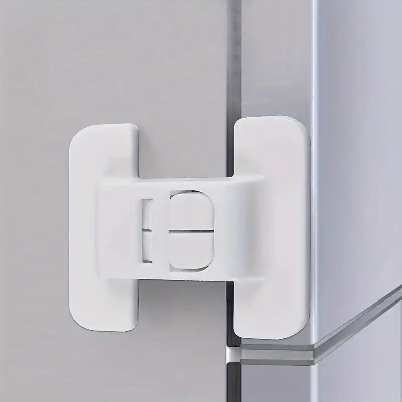 جهاز إغلاق أبواب الثلاجة بـ 4 قطع، قفل تلقائي بوصلة أمان، جهاز منع الإغلاق الصحي لأبواب الثلاجة العالمي بدون ثقوب، قفل تخزين الأدراج التلقائي، قفل بلاستيكي لا يمكن إغلاقه بإحكام، تصميم بزرين لمنع فتح القفل