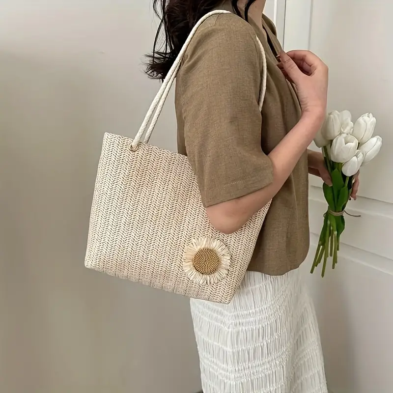حقيبة توت نسائية أنيقة بنقشة زهور – سعة كبيرة، حقيبة كتف مع حزام قابل للفصل، مبطنة بالبوليستر، مثالية للاستخدام اليومي