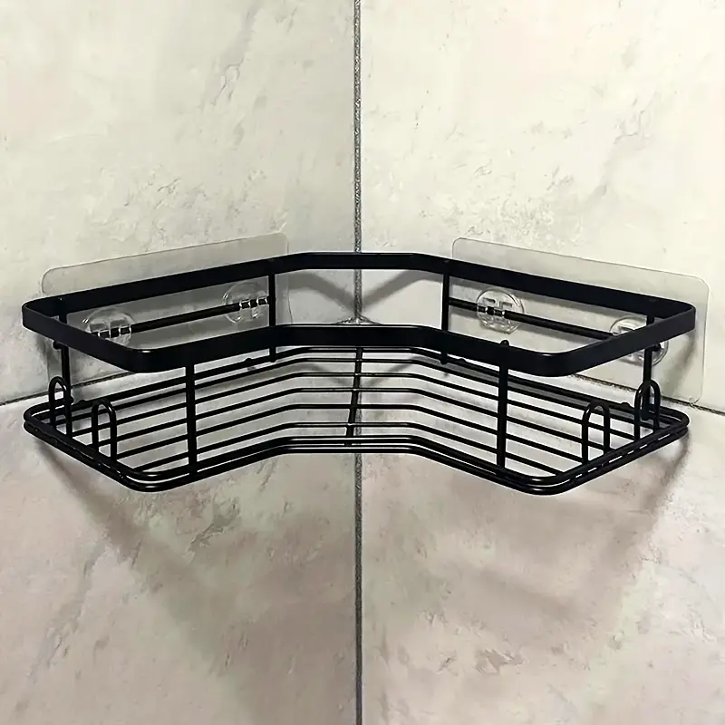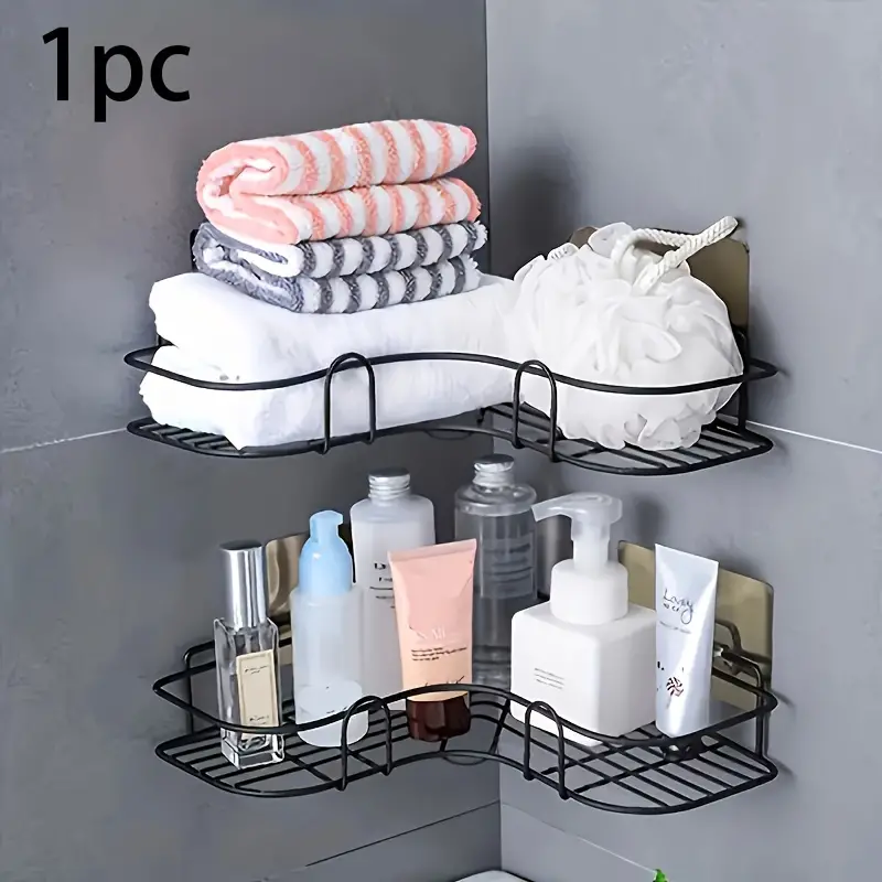 رف تخزين قابل للتثبيت بسهولة بدون حفر – تصميم أنيق بخطاف مزدوج مع وسادات لاصقة شفافة، يوفر المساحة ومتين لتنظيم المنزل