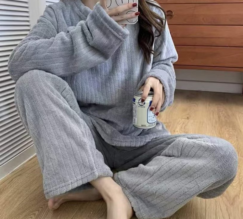 طقم نوم نسائي بأكمام طويلة مكون من قطعتين بيجامة نسائية شتوية
