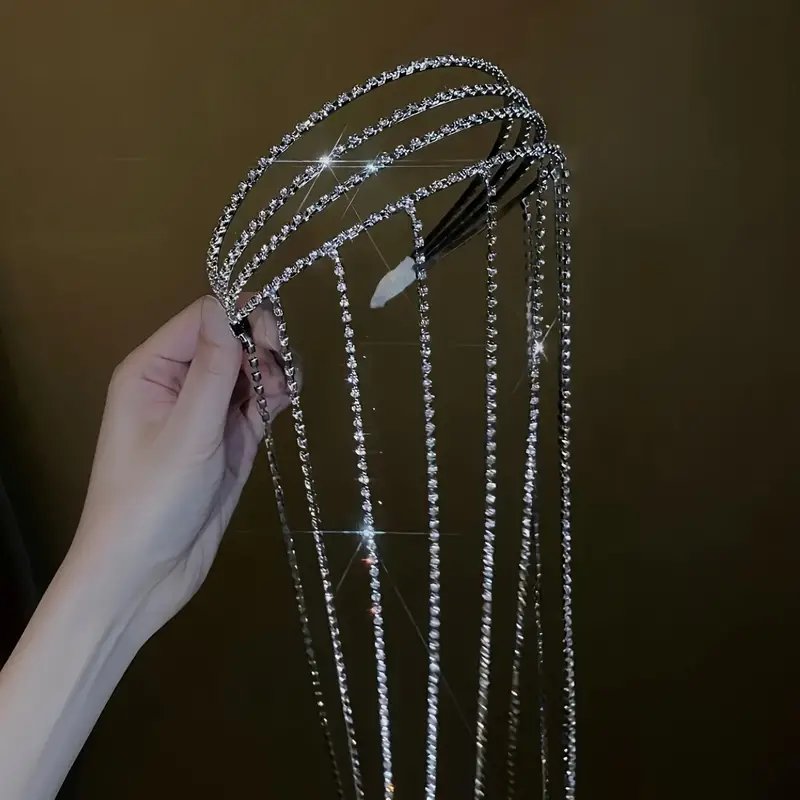 عصابة رأس أنيقة بشراشيب الراين – أسلوب الهيب هوب البانك، إكسسوار شعر من سبيكة للنساء
