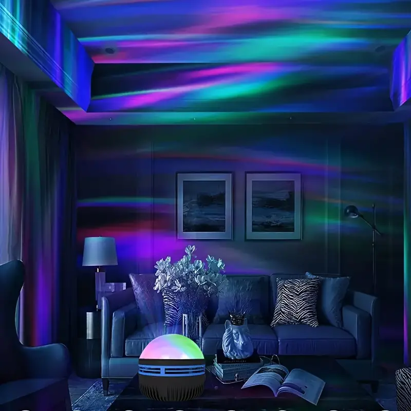 1 جهاز بروجكتور أضواء الشفق القطبي الشمالي 7 تأثيرات ضوئية بروجكتور ضوء النجوم قابل لإعادة الشحن