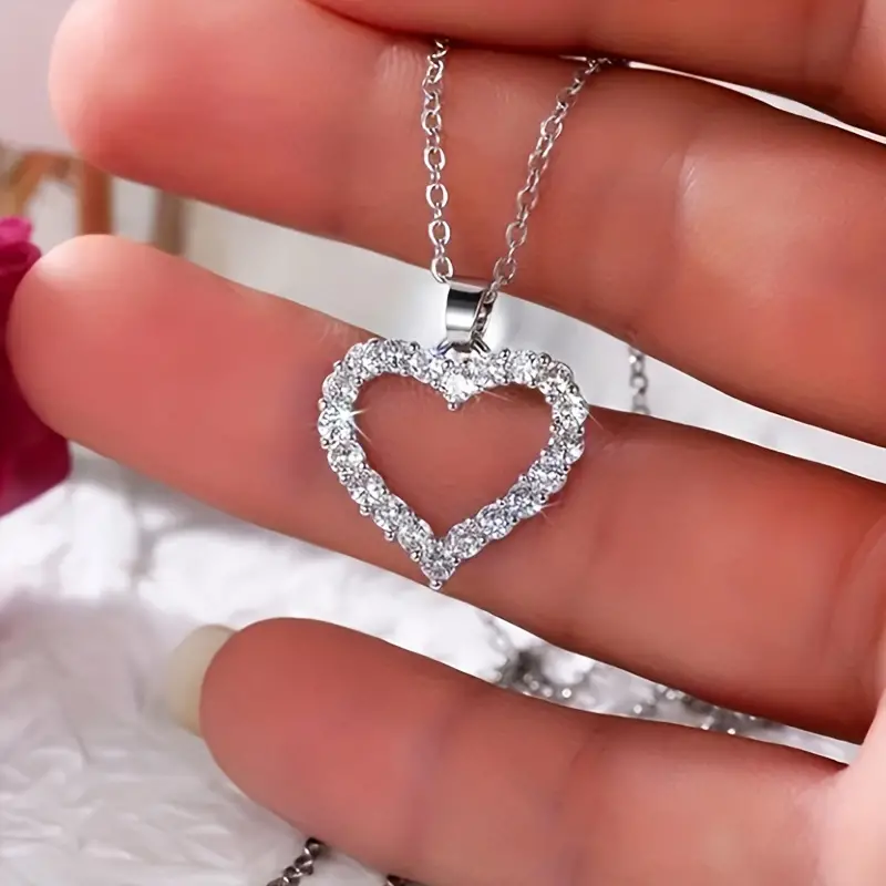 1 قطعة قلادة حب فضية كاملة من حجر الراين بالكامل، قلادة من الفولاذ المقاوم للصدأ النساء