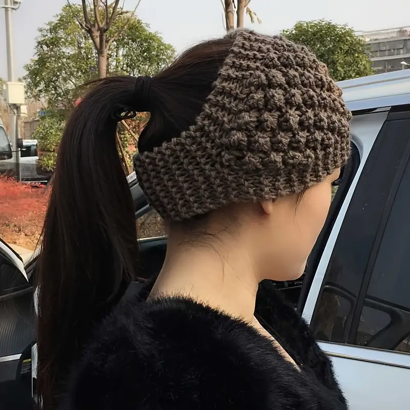 1 قطعة من عصابة رأس صلبة اللون للحماية من الأذن، عصابة رأس محبوكة للخريف والشتاء، عصابة شعر كروشيه عريضة الحواف للنساء