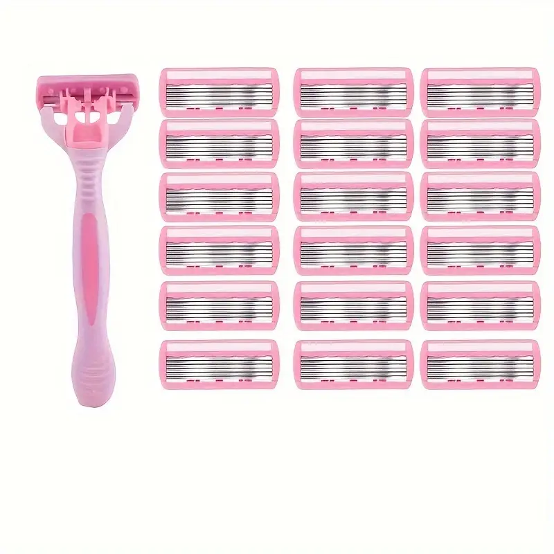 1 مقبض و 18 شفرة حلاقة آمنة بـ6 طبقات للنساء والرجال – شفرات ذات جودة عالية قابلة لإعادة الاستخدام وخالية من العطور لحلاقة ناعمة لشعر الجسم والساقين واللحية