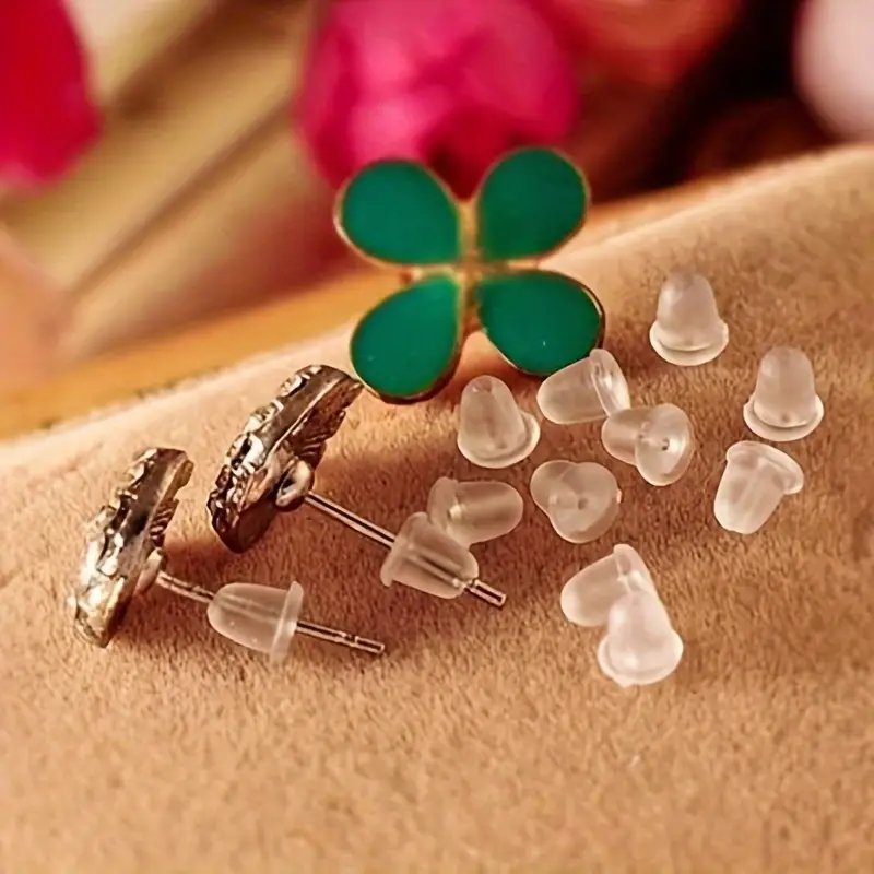 100 قطعة حامل أقراط من السيليكون معدنية للأذن مصنوعة من البلاستيك الشفاف الناعم مع قفل بوليت من السيليكون لتأمين الأقراط