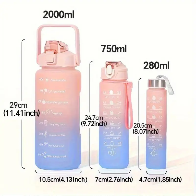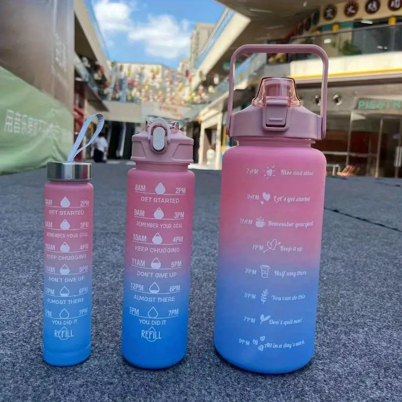 3 قطع زجاجة ماء ملهمة مع علامة زمنية تحفيزية – مانعة للتسرب، مصنوعة من مادة بولي بروبيلين خالية من مادة البيسفينول أ، مجموعة متعددة للياقة البدنية،