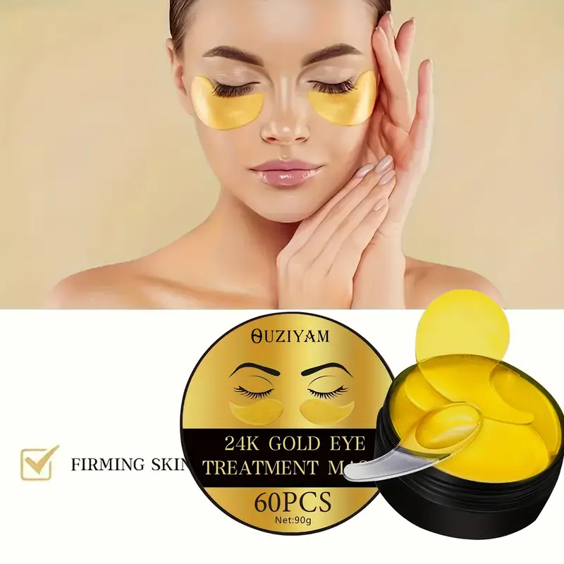 60 قطعة قناع للعناية بالعين الذهبي عيار 24 قيراط، لاصقات تحت العين، ترطيب وتقوية البشرة، ترطيب العناية بالعين، الوزن الصافي 90 جرام